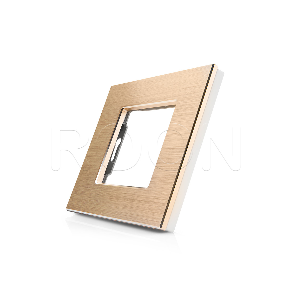 Jednoduchý rámeček z masivního (4 mm) broušeného hliníku, pro modulární systém zásuvek a vypínačů ROON.