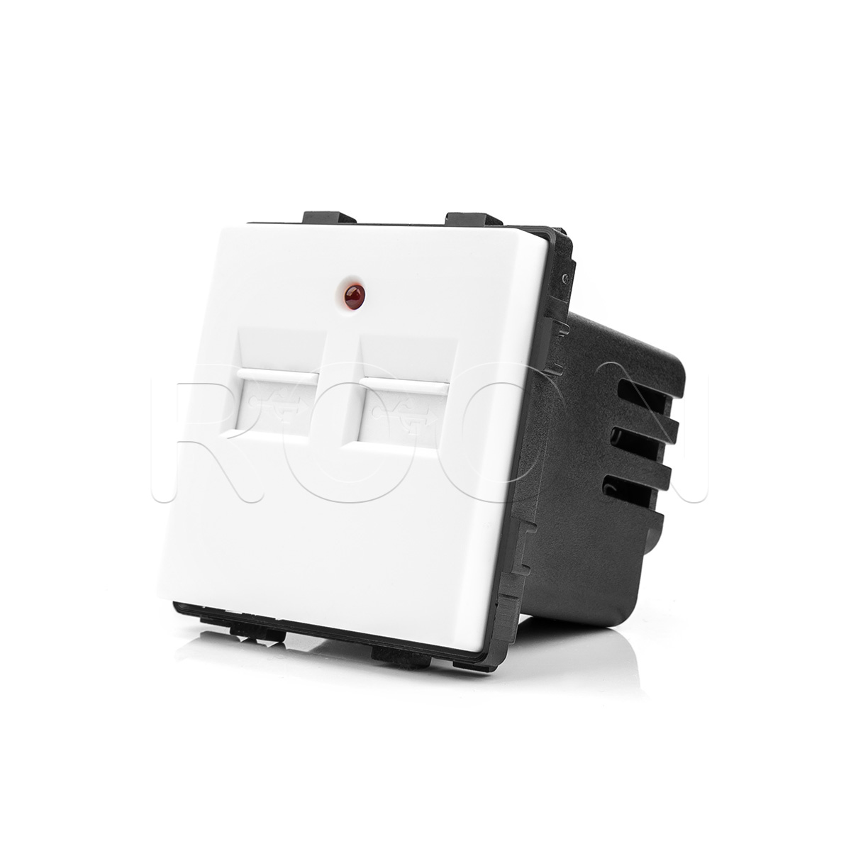 Modul USB nabíječka - dvojitá - výstup 5V, 2A - bílá barva, pro modulární systém ROON (skleněné a ALU rámečky).